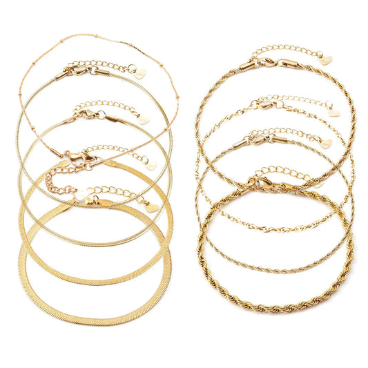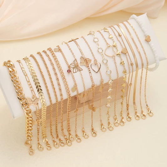 20 Pcs/Set Bohemian Twisted Snake Chain Anklet for Women Summer Beach Vintage Simple Foot Ankle Bracelet on Leg Jewelry Gifts